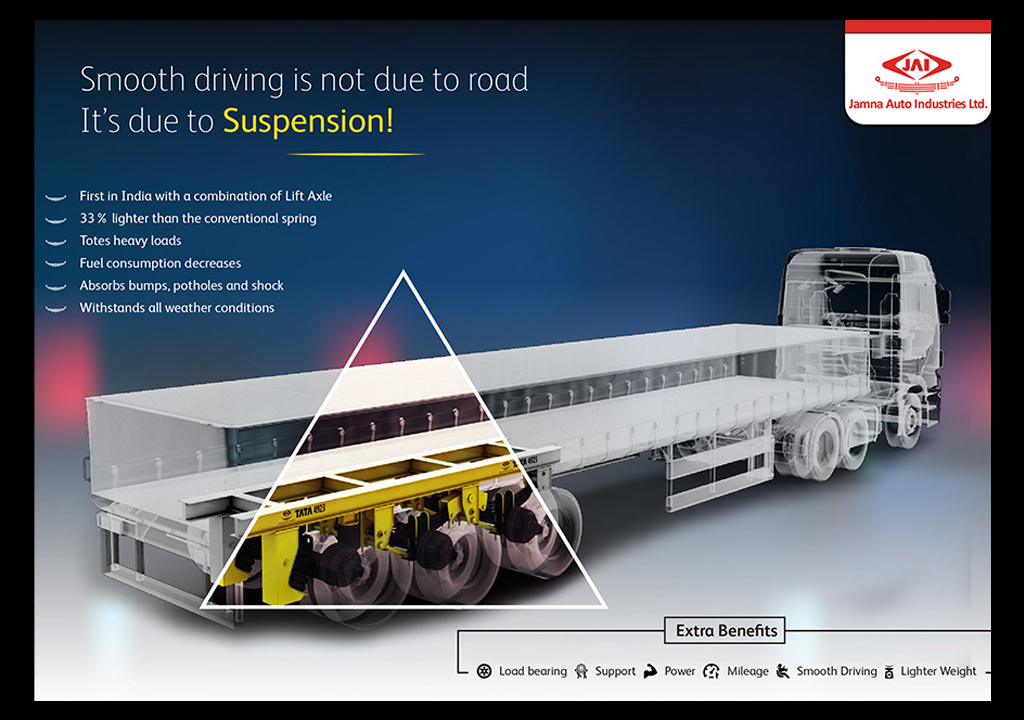 Objective: Create an eye-catching and informative poster that highlights the unique benefits of Jamna Auto Industry's trailer mechanical suspension system. The poster should convey the message that this product offers an unparalleled driving experience with superior comfort, durability, and performance.